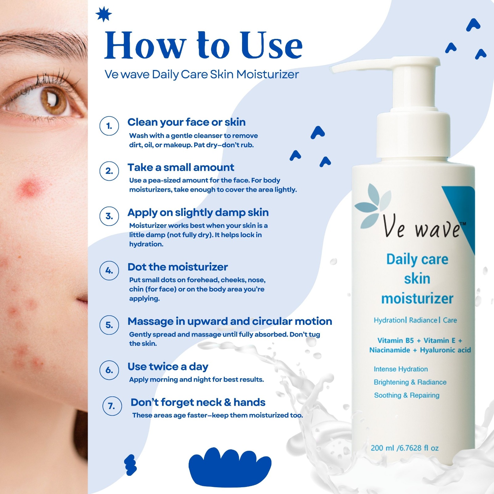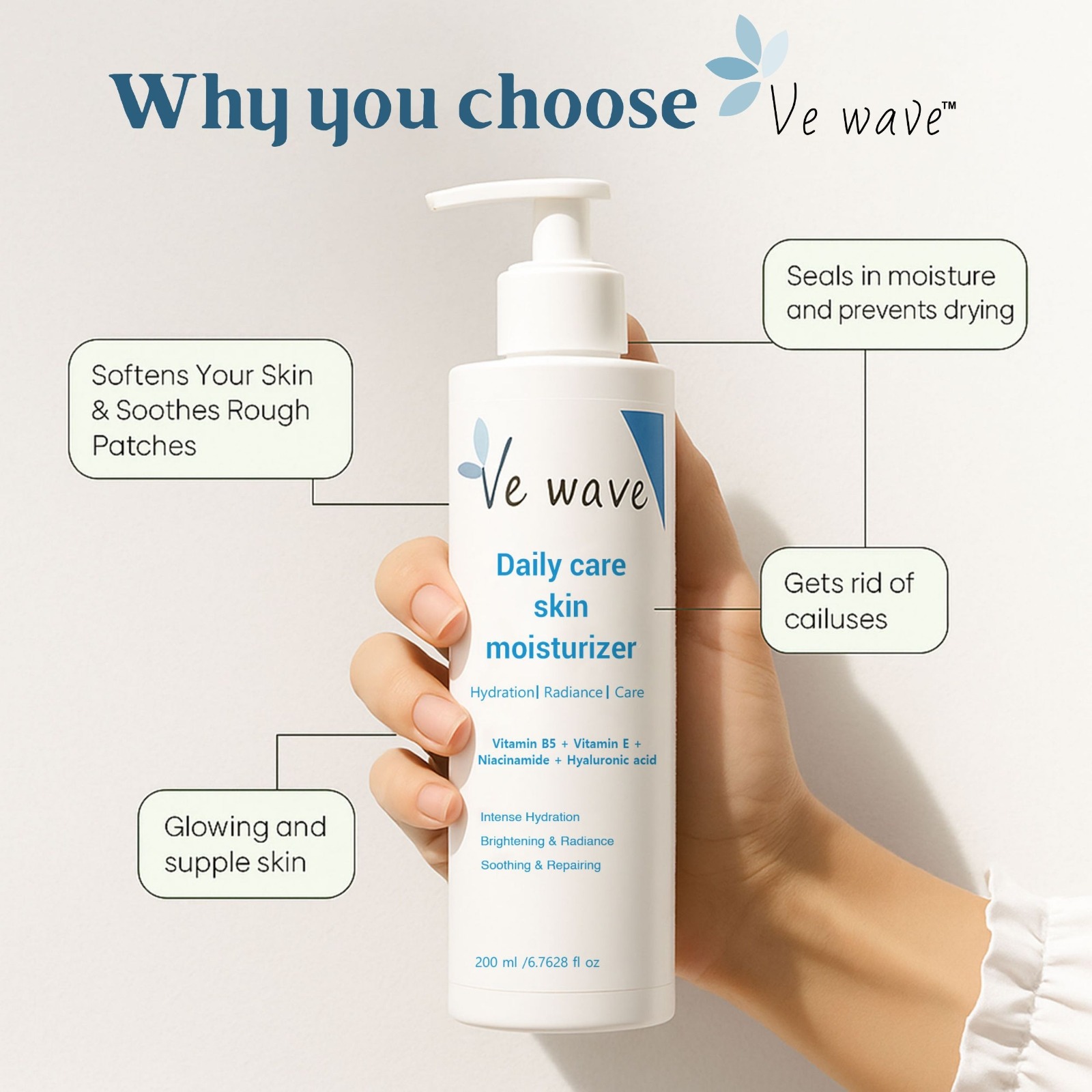 A daily hydrating moisturizer enriched with Niacinamide, Vitamins B5 & E, and Hyaluronic Acid to brighten, soothe, and deeply nourish the skin.